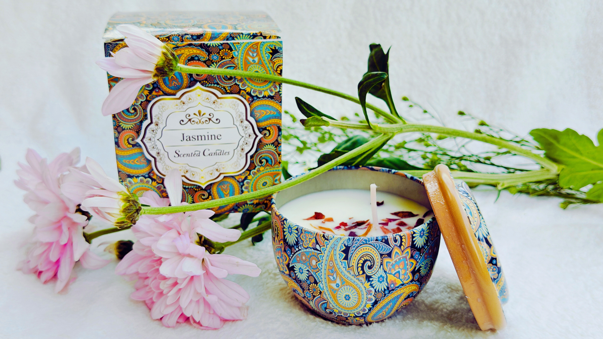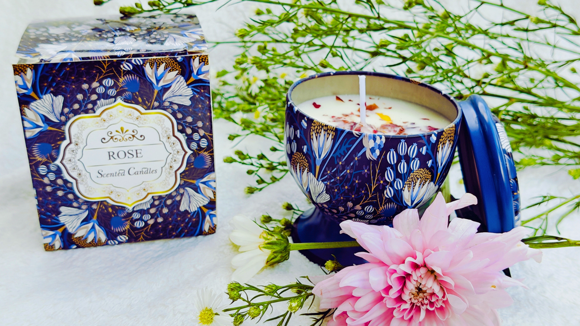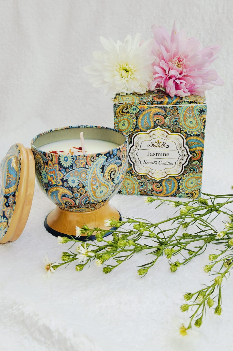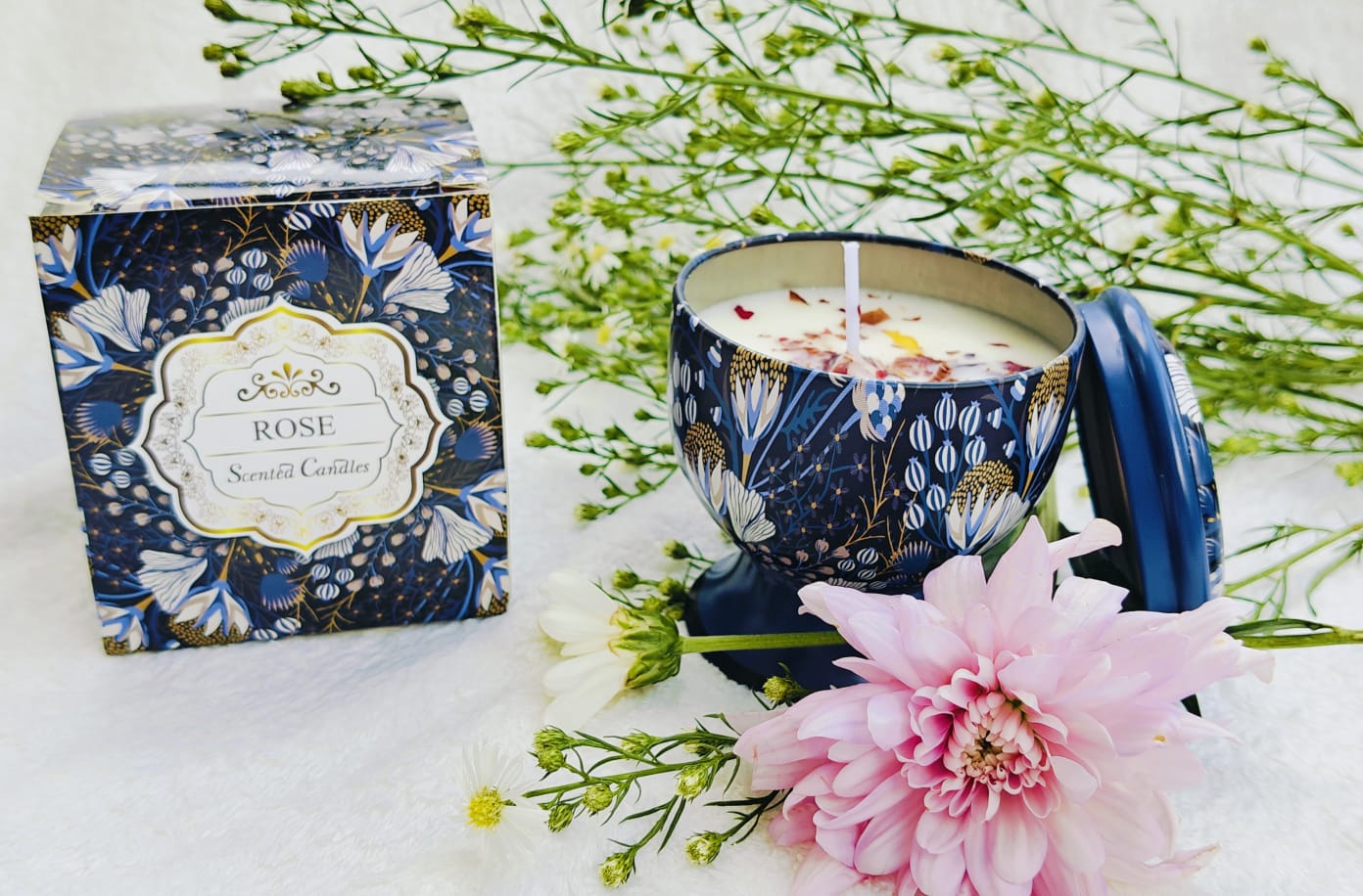 Presenting the exquisite Scented Bliss Scented Candle, a collection designed for true luxury and relaxation. Each candle  is hand-poured using clean-burning, eco-friendly soy wax and infused with premium, long-lasting fragrance oils, offering an assortment of captivating aromas to suit any mood or space. Housed in chic, reusable containers, these candles provide a long-lasting, soot-free burn that gently fills the air with soothing aromatherapy. Elegantly presented in a sophisticated tin container , this set is the perfect ready-to-lit soothing object, allowing the recipient to explore a variety of scents and transform their home into a tranquil sanctuary.